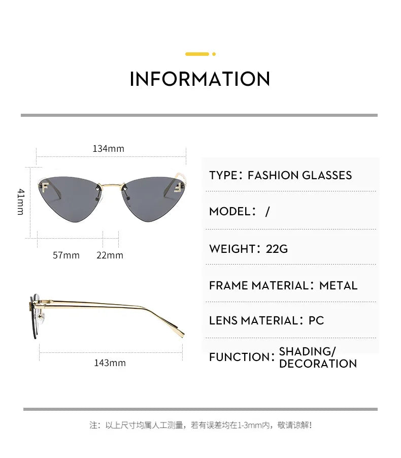 lunette de soleil sans monture ornée de strass au extrémité des verres qui vous protège les yeux des rayons uv du soleil